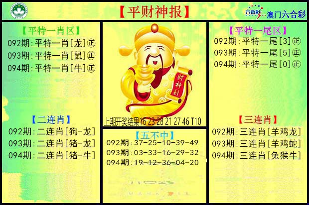 094期: 特码三行 【金水土】 开?00准